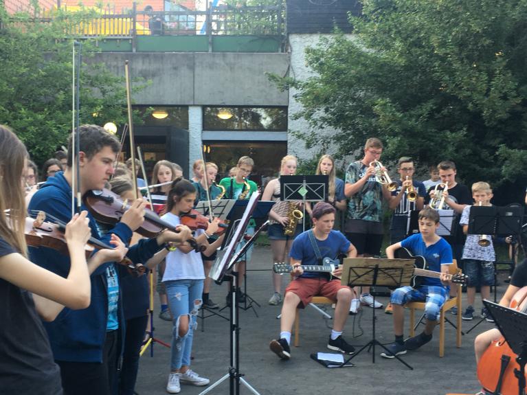 Sommerferien zu absolvieren gilt. Mit Begeisterung wurde geprobt, musiziert, improvisiert, diskutiert, aber auch die herrliche Umgebung der Jugendherberge bei strahlendem Sommerwetter erkundet, Wasserschlachten ausgefochten und gespielt. Kurzum: Trotz der vielen Proben und Arbeitsphasen kam der Spaß nicht