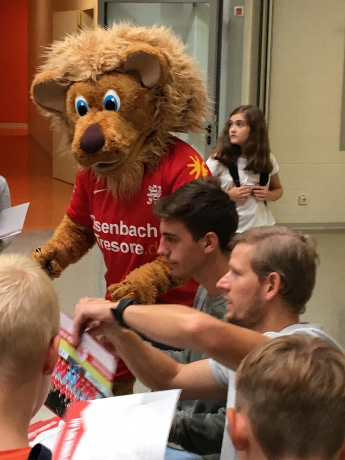 Henner, das MT Maskottchen und die Sportklasse 6b der ASV