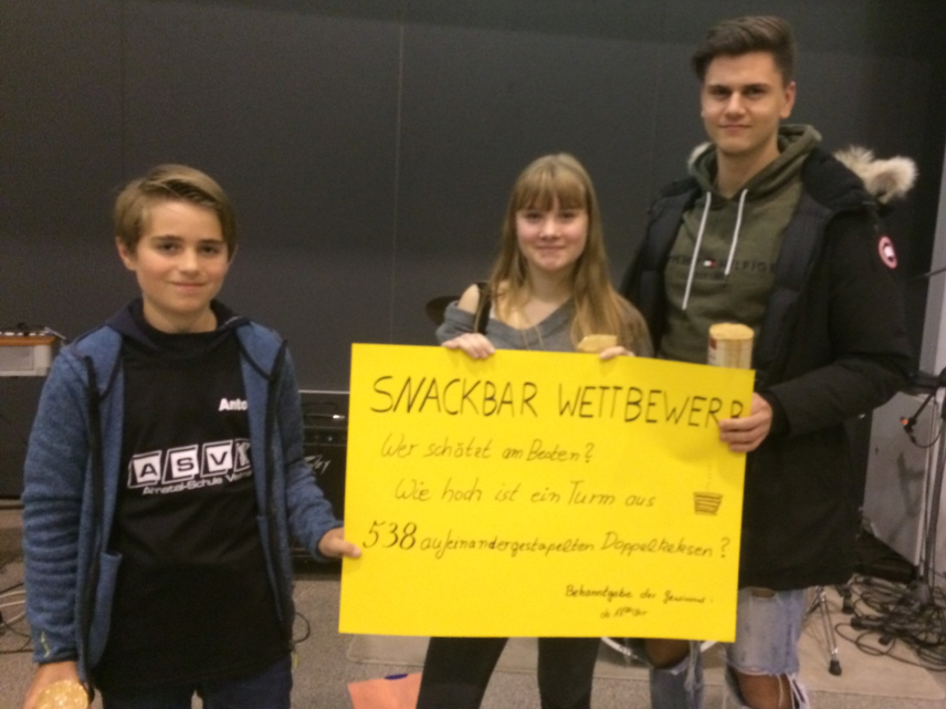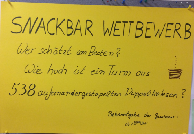 In diesem Jahr gab es eine Schätzaufgabe zu lösen: „Wer kann am Besten abschätzen, wie hoch ein Keksturm aus 538 aufeinander gestapelten Doppelkeksen ist?“
