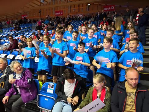 Nach einigen Anläufen bekam Frau Weber endlich die Chance mit ihrer Klasse bei der MT Melsungen als Einlaufkids teilzunehmen. Aufgrund einer Familienfeier konnte sie leider nicht selbst vor Ort sein.