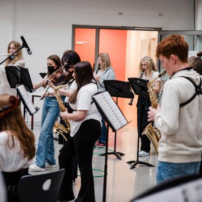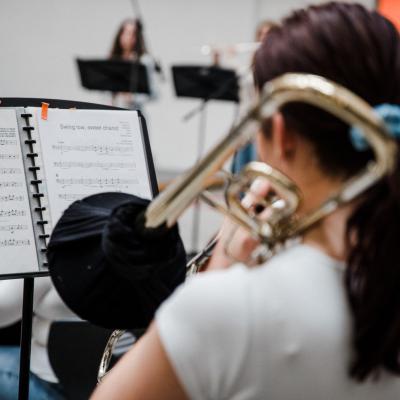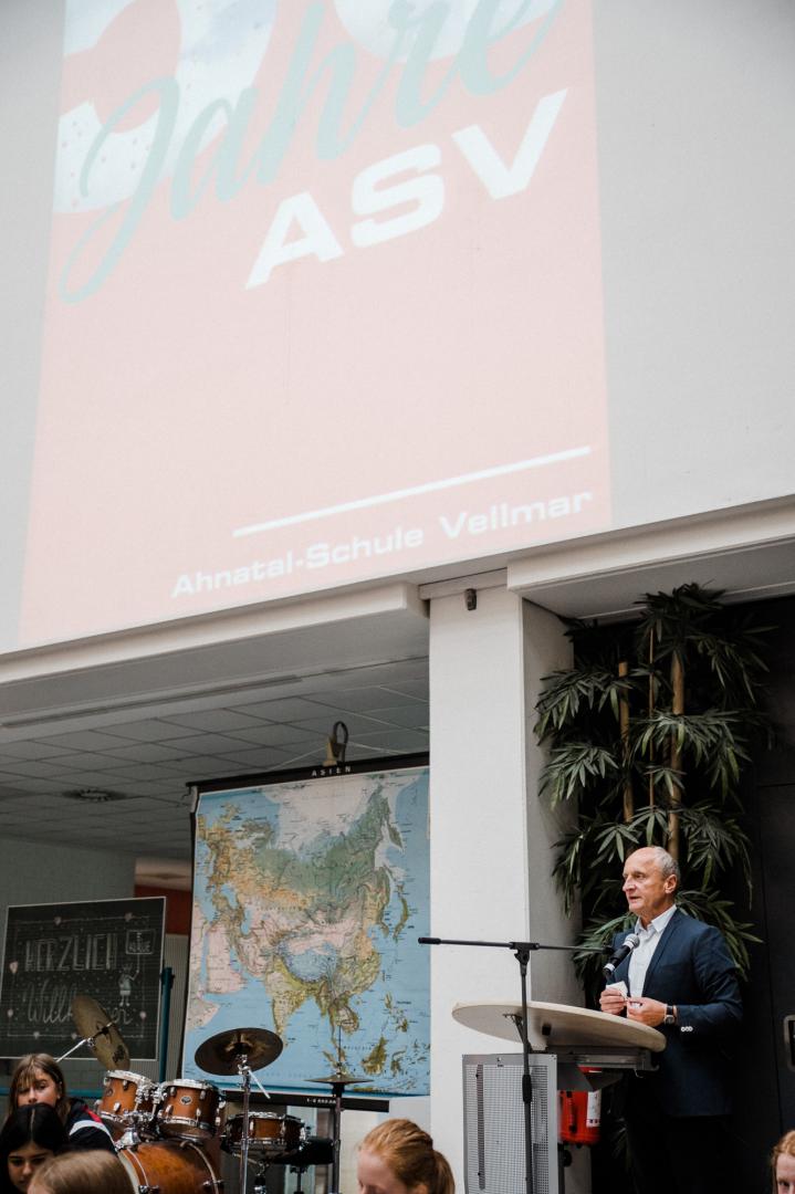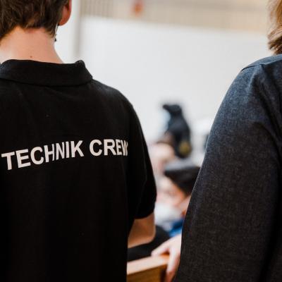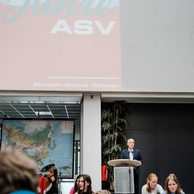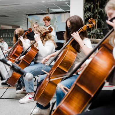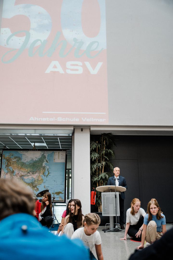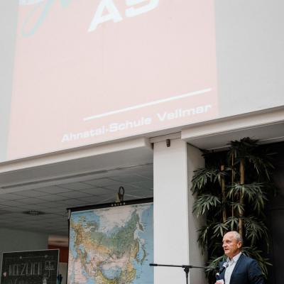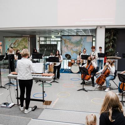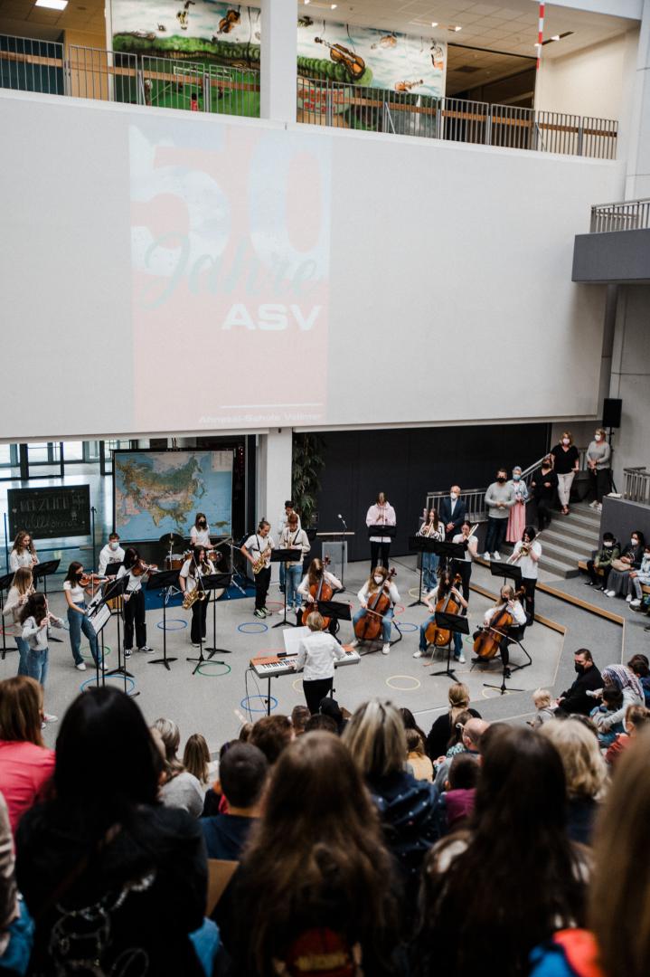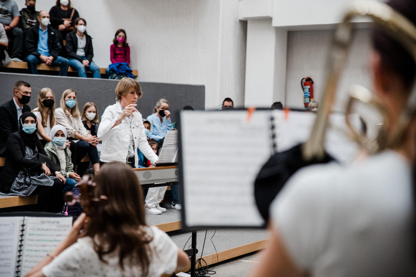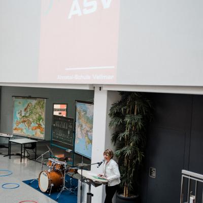 Ich darf in die Schule, die Musik wird lauter, unten im Atrium werden wir Neuen von der Musikklasse 9a mit einem Swing begrüßt und glücklich setze ich mich mit meinen Eltern auf eine der großen Stufen im Atrium. Zuerst spricht der Schulleiter, Herr Freiling, zu uns und erzählt von den vielen AGs, die die Schule anbietet. Das macht mich sehr neugierig.