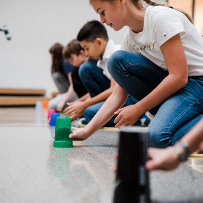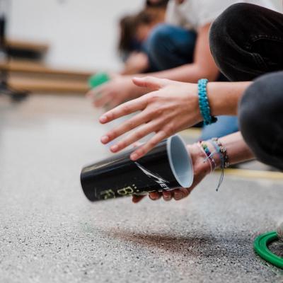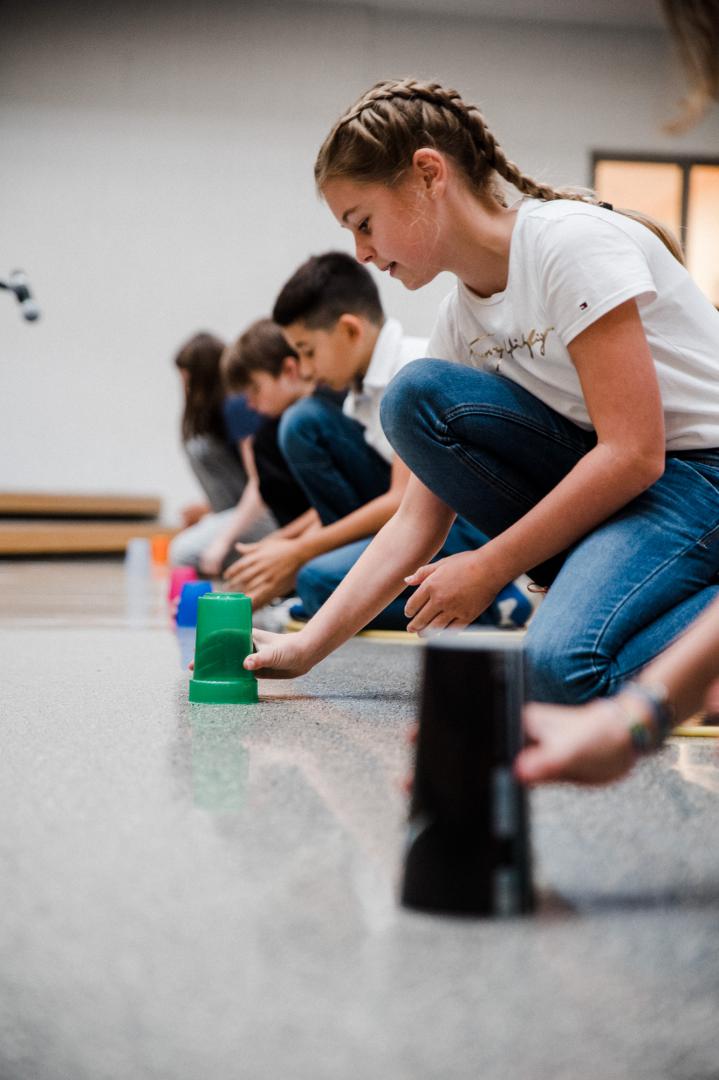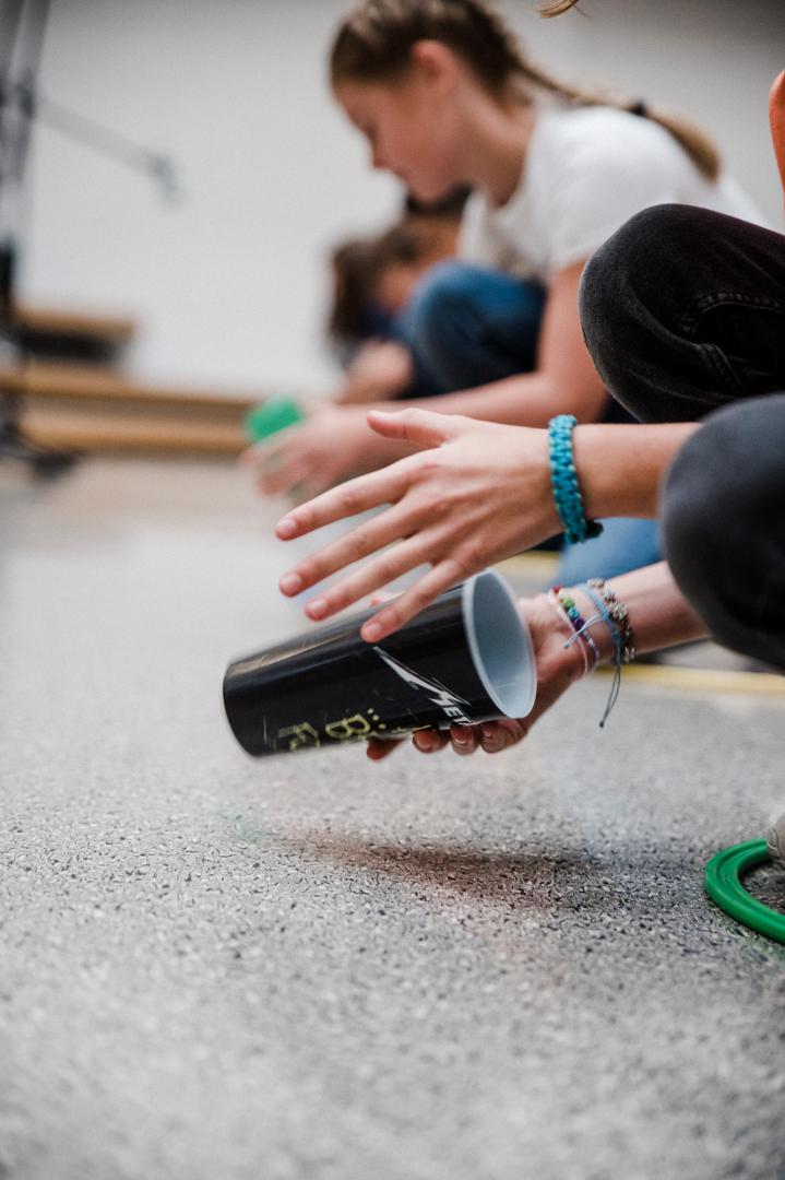 Dann tritt die Klasse 7a auf, die für uns eine „Becher“ – Choreografie eingeübt hat. Toll!