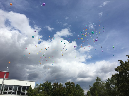 Die bunten Luftballons der Klassen 5a bis 5f stiegen schnell in nordöstlicher Richtung in die Lüfte.