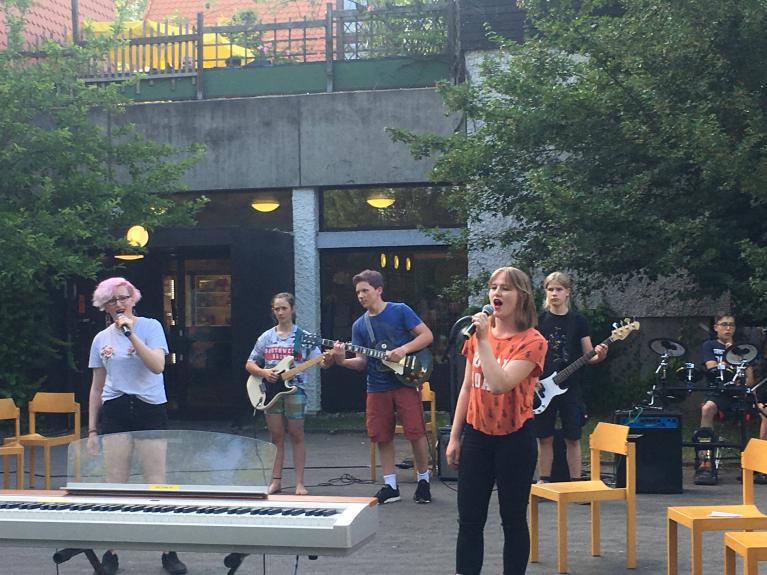 Sommerferien zu absolvieren gilt. Mit Begeisterung wurde geprobt, musiziert, improvisiert, diskutiert, aber auch die herrliche Umgebung der Jugendherberge bei strahlendem Sommerwetter erkundet, Wasserschlachten ausgefochten und gespielt. Kurzum: Trotz der vielen Proben und Arbeitsphasen kam der Spaß nicht