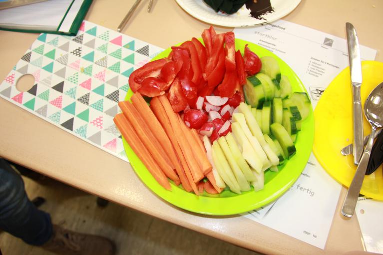 Im Januar fand der erste Projekttag statt, an dem gewaschen, geschnitten, geputzt, geschnippelt, belegt, dekoriert und lecker gegessen wurde.
