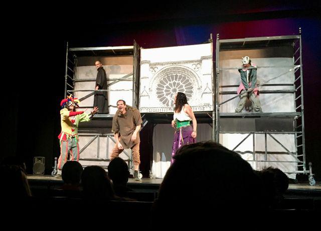 Wer kennt sie nicht, die Geschichte des buckligen Quasimodo und seiner unerfüllten Liebe zur schönen Esmeralda? Das Theaterstück, welches SchülerInnen der Französischkurse 9 und 10 in Begleitung von Frau Schäfer und Frau Windrich am Donnerstagabend, den 9.11.2017 im Schauspielhaus Kassel gemeinsam besuchten, behandelt aber noch sehr viele andere Themen – in welcher Beziehung steht die Kirche zur Moral oder wie behandeln wir Menschen, die nicht der gängigen ‚Norm’ entsprechen? Gut, wir konnten nicht alles wörtlich verstehen auf Grund der fremdsprachlichen Barriere (das Stück wurde in französischer Sprache ohne Untertitel aufgeführt), aber die tollen Darsteller, allen voran der hinkende Quasimodo, konnten uns überzeugen. Dieses Sprachbad mit Witz werden wir so schnell nicht vergessen!