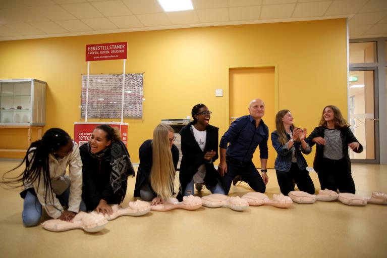 Mit Hilfe dieser Aktion wollen die Ärzte darauf hinweisen, dass Reanimation einfach ist und jeder es tun kann – auch Kinder. Leider steht die Überlebenschance im Falle eines Herzstillstandes in Deutschland bisher bei 1:10. In den skandinavischen Ländern, wo Kinder an ihrer Schule in die Herzdruckmassage eingeführt wurden, haben vier von 10 Personen die Chance zu überleben.