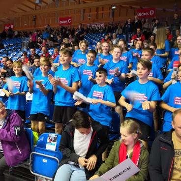 Nach einigen Anläufen bekam Frau Weber endlich die Chance mit ihrer Klasse bei der MT Melsungen als Einlaufkids teilzunehmen. Aufgrund einer Familienfeier konnte sie leider nicht selbst vor Ort sein.