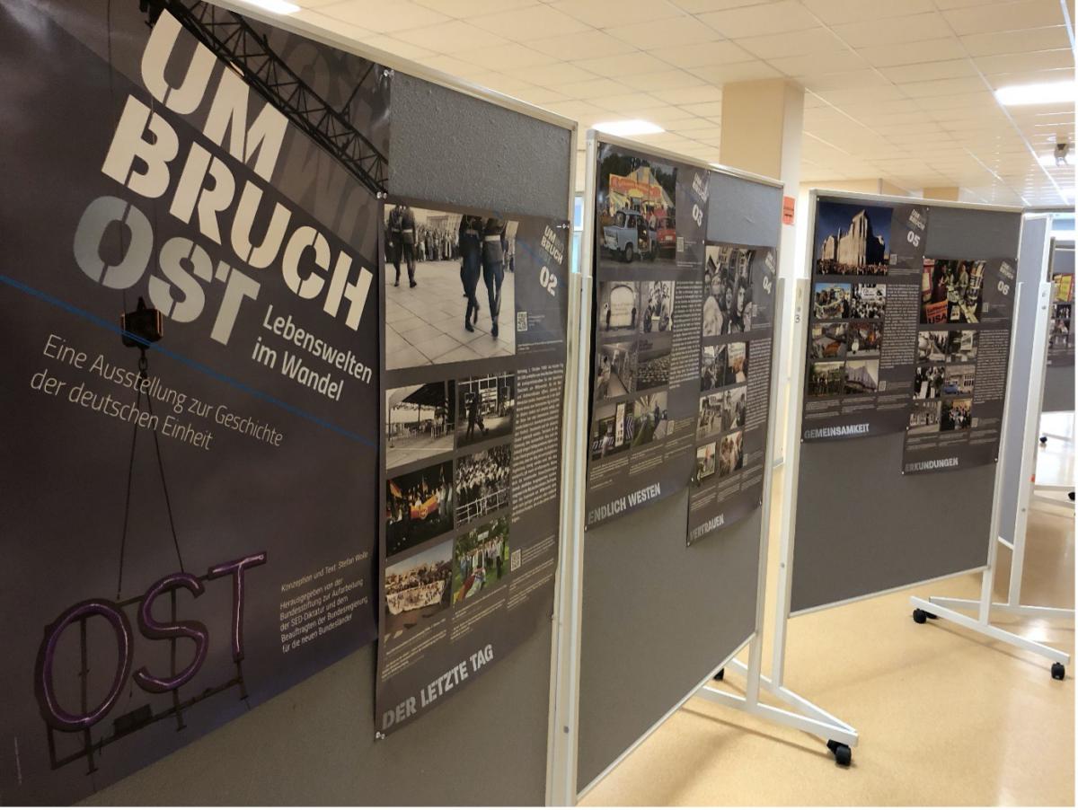 Die Ausstellung „Umbruch Ost. Lebenswelten im Wandel“ widmet sich dem Alltag der deutschen Einheit seit 1990. Auf den 20 Ausstellungstafeln verlinken QR-Codes auf Zeitzeugeninterviews des NDR. Drei Ergänzungstafeln des Online-Portals Statista präsentieren die wichtigsten Zahlen und Fakten zu den Entwicklungen seit 1990. Im Zentrum der Schau stehen die Umbruchserfahrungen der Ostdeutschen. Deren Lebenswelten hatten sich mit der Wiedervereinigung am 3. Oktober 1990 grundlegend verändert. Autor der Ausstellung ist der Historiker und Publizist Stefan Wolle. Herausgeber sind die Bundesstiftung zur Aufarbeitung der SED-Diktatur und der Beauftragte der Bundesregierung für die neuen Bundesländer.